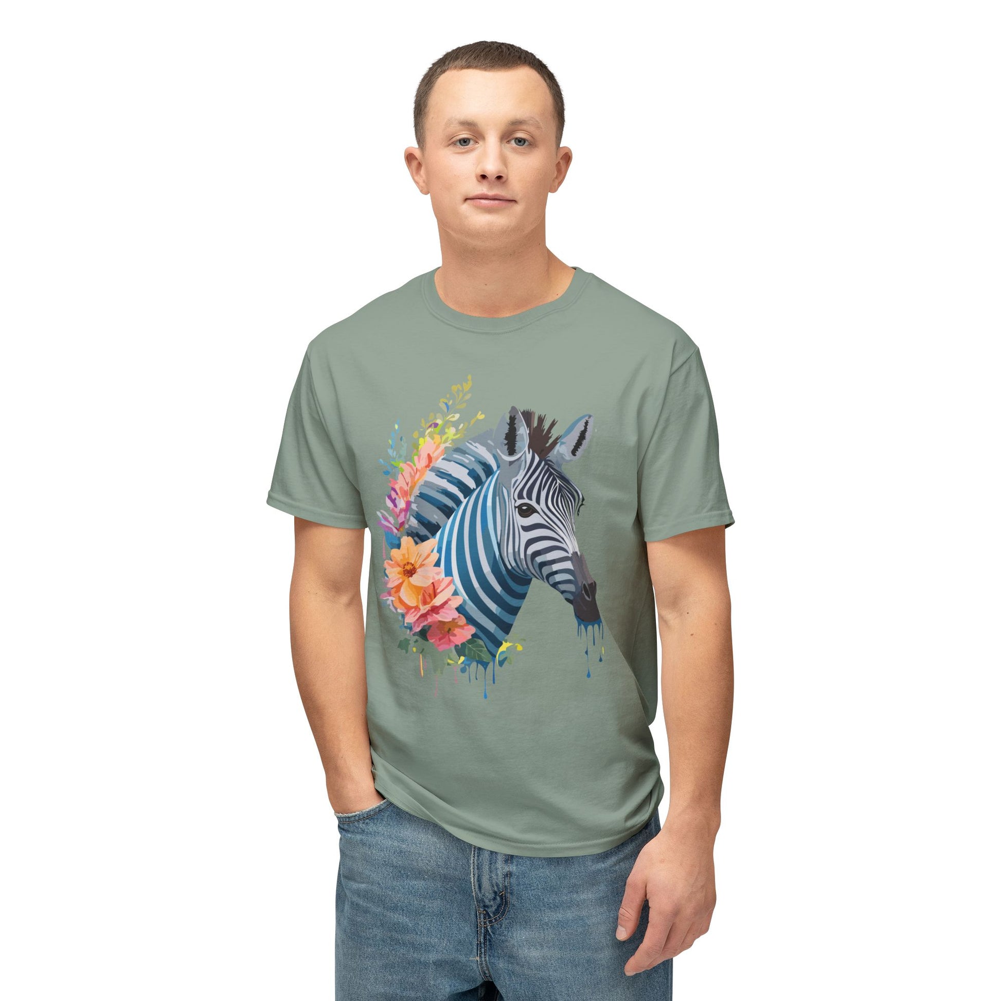 Zebra T-Shirt, Vintage Zebra Tee, Floral Tees, Zebra Art Design Shirt, Tee Shirt with Zebra